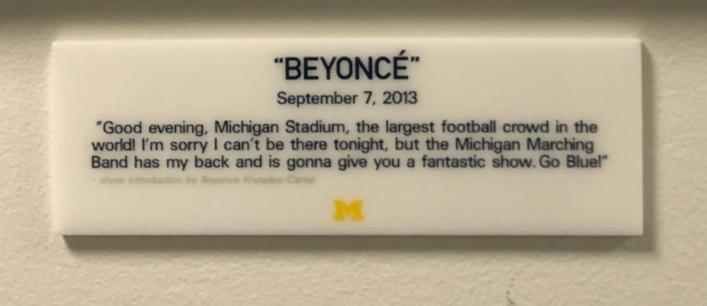 “Good evening, Michigan Stadium, the largest football crowd in the world! I’m sorry I can’t be there tonight, but the Michigan Marching Band has my back and is gonna give you a fantastic show. Go Blue!”