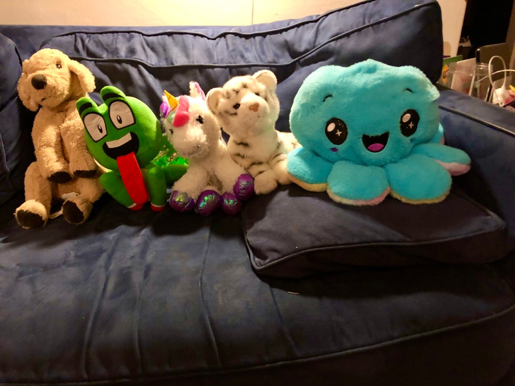 She had set up a school for five of her favorite stuffies, who were seated dutifully in a line on the couch. “OK, mommy, it’s your turn to teach,” she said.